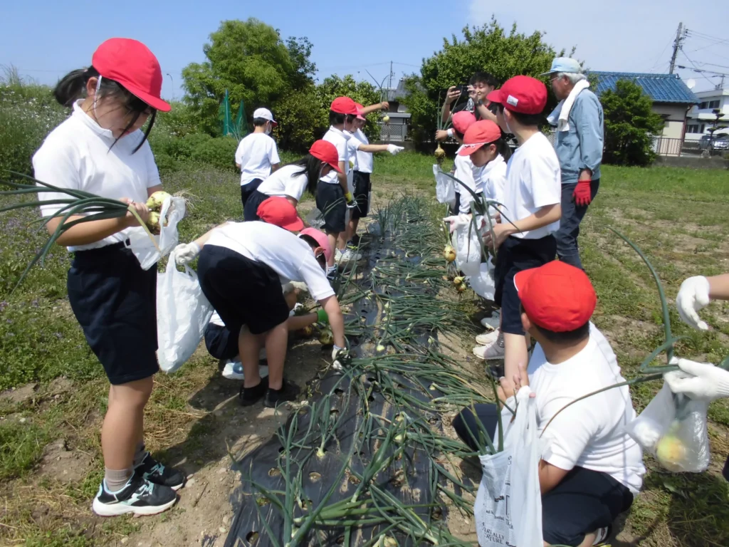 明野小学校2年生 玉ねぎの収穫