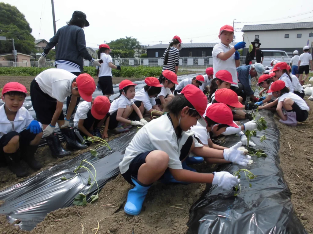 明野小学校1年生さつま芋の苗植え
